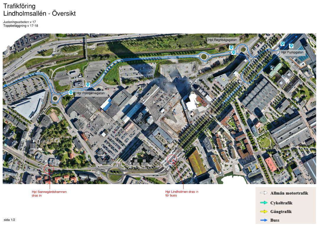 Under vecka 18, (27/4-1/5) kommer sträckan att stängas av helt för trafik i etapper. Avstängningen har stor påverkan på både allmän trafik och buss. Därför kommer buss att ledas om via Andromedagatan – Polstjärnegatan vilket medför att hållplats Lindholmen och Sannegårdshamnen dras in för busstrafik. Läs mer på Västtrafiks hemsida för mer information kring påverkan på buss.