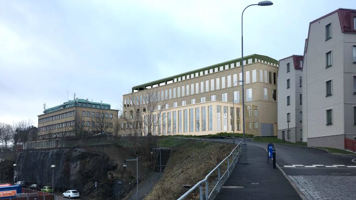 Förslag på utbyggnad för skolan med fler våningar och tillbyggnad.