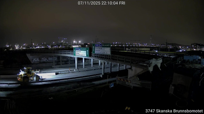 Filmen börjar med en översiktsbild över Brunnsbomotet på Hisingen, där trafiken är avstängd och arbetsområdet är upplyst av starka bygglampor. Flera stora grävmaskiner arbetar samtidigt med att riva den gamla bron. Maskinernas skopor lyfter bort betong och armering som läggs i stora högar. Filmen går sedan över till bilder från återställningen av vägen. Lastbilar transporterar bort material, och vägbanan jämnas till. Avslutningsvis visas en lugn morgonscen där trafiken återigen rullar på den återställda vägen.
