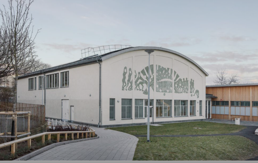 Sannaskolan har skolans sporthall fått ett nytt konstverk på fasaden.