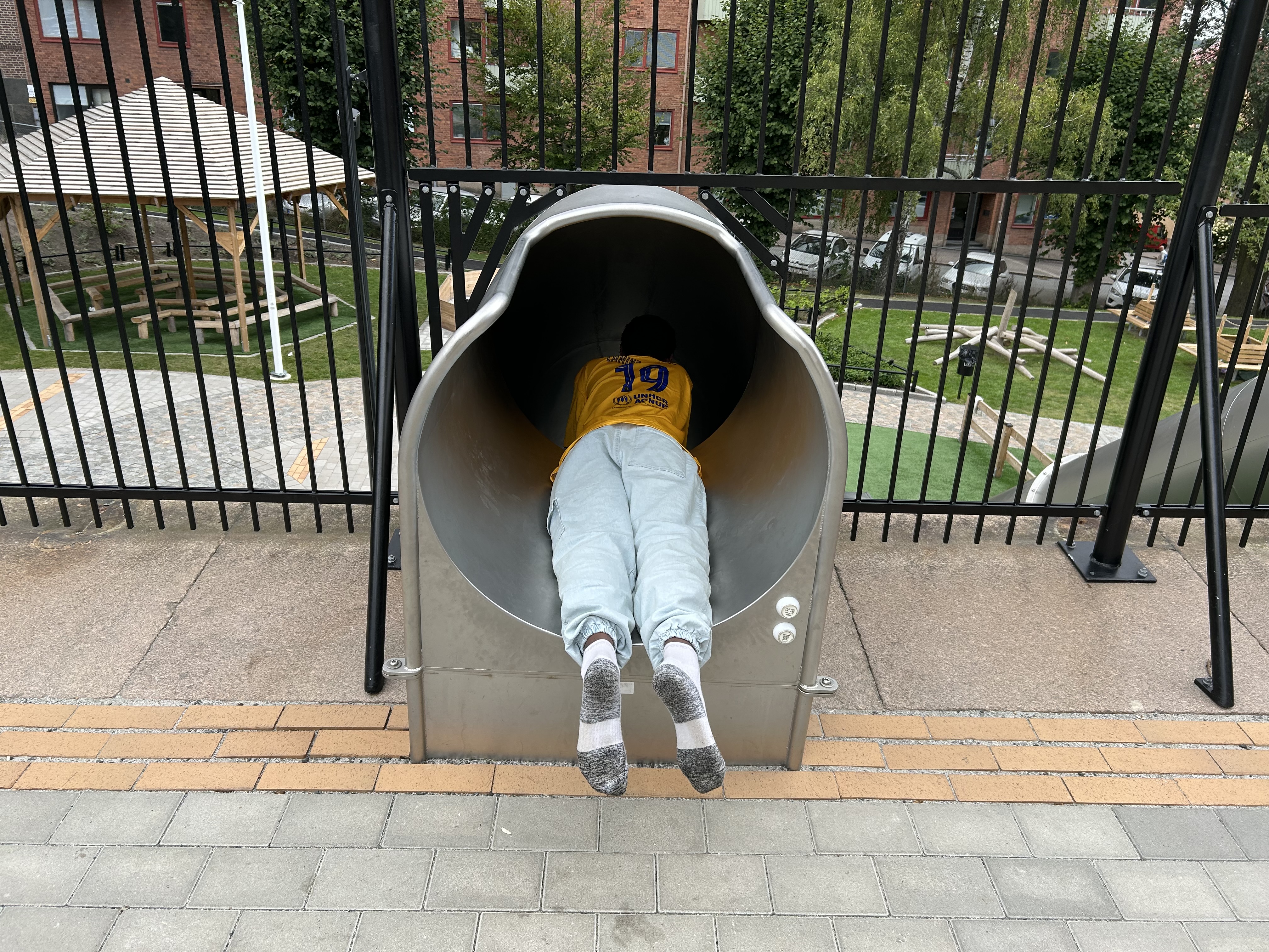 — Rutschkanan på nedergården tycker jag väldigt mycket om säger Hanna.
