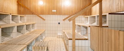 I omklädningsrummet finns en torrbastu. Idrotts- och föreningsförvaltningens torrbastur har en temperatur på 80–90 grader. Se när bastun är öppen på sidan Öppettider,
