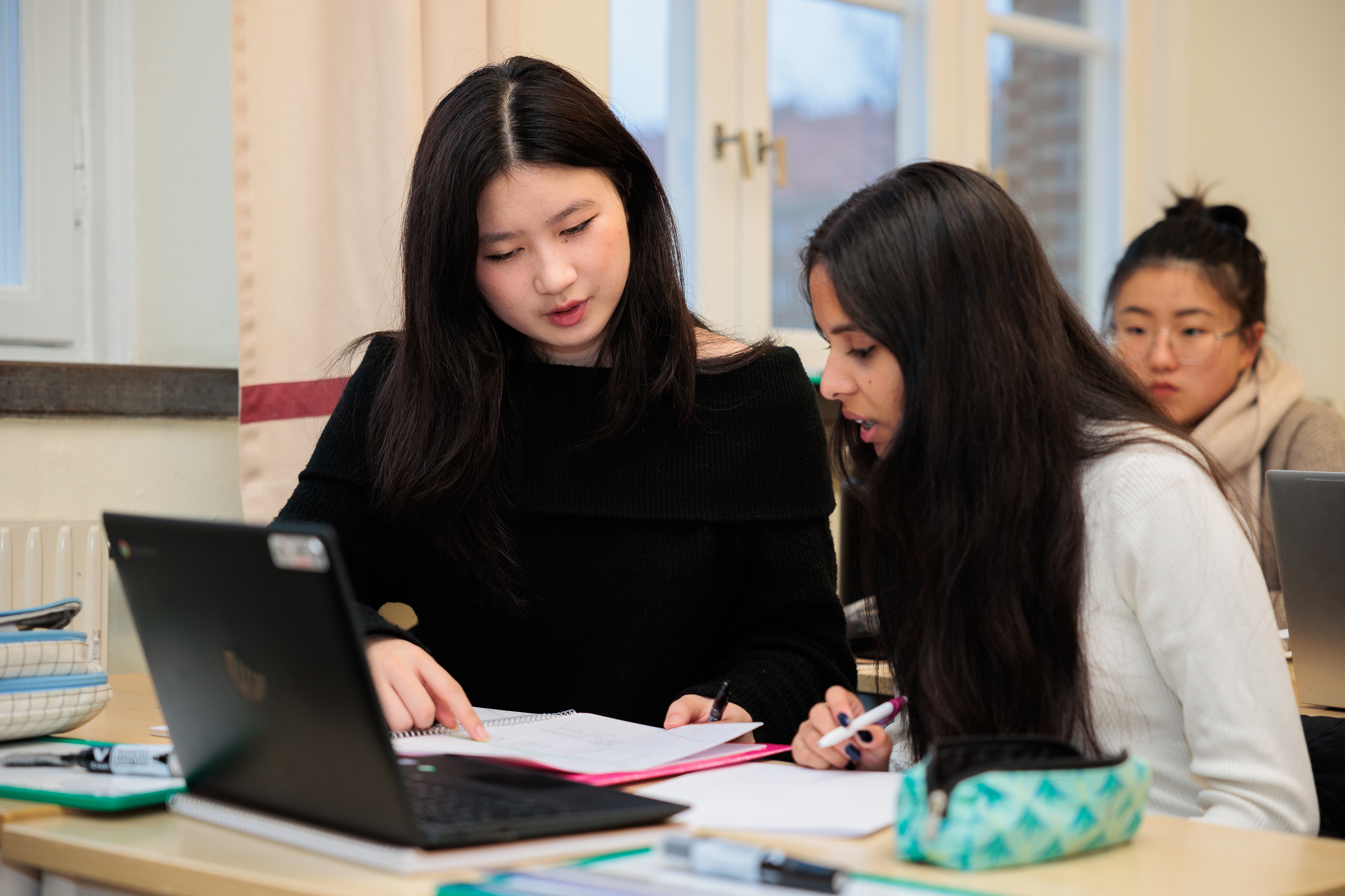 IB students sharing ideas in class. Photographer: Davide Panzino.