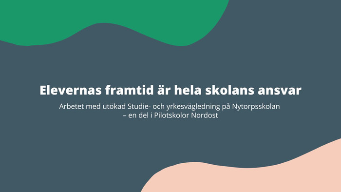 Nytorpsskolan är en av pilotskolorna i nordost. Under fyra år ska förvaltningen med hjälp av utsedda pilotskolor fördjupa kunskapen, testa nytt och lära för att i förlängningen åstadkomma förändring i hur stöd formas och ges till grundskolor. Här är en film om utökad studie- och yrkesvägledning.