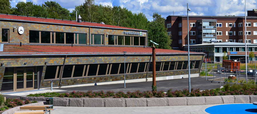 Skolan stod klar 2020. Både inom och utomhusmiljö är alltså nya med många olika lärmiljöer för eleverna. Skolan har 4 våningsplan där sporthallen ligger längst ner, årskurs 4 och anpassad grundskola är på entréplan tillsammans med vårt centralt belägna bemannade skolbibliotek och elevhälsa och administration. Här hittar du även vår skolrestaurang och vår Black box. En trappa upp har högstadiet sina klassrum medan årskurs 5 och 6 befinner sig överst i skolan.