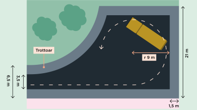 Tillfartsvägen och möjlighet att vända och backa med en sopbil