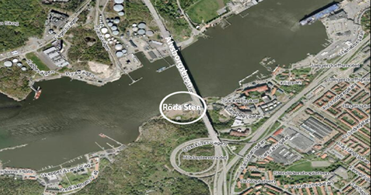 Röda Sten ligger vid det södra fästet till Älvsborgsbron, cirka 4,5 km väster om Gustav Adolfs torg, och är ett välbesökt och uppskattat rekreationsområde för göteborgarna. Det stora behovet av temporära bostäder som finns idag, i kombination med en boendelösning av tillfällig karaktär, gör att kontoret anser att en lokalisering av en flytande boendelösning vid Röda Sten är intressant att pröva. Områdets lämplighet för ändamålet kommer att prövas i samband med förhandsbesked om bygglov.