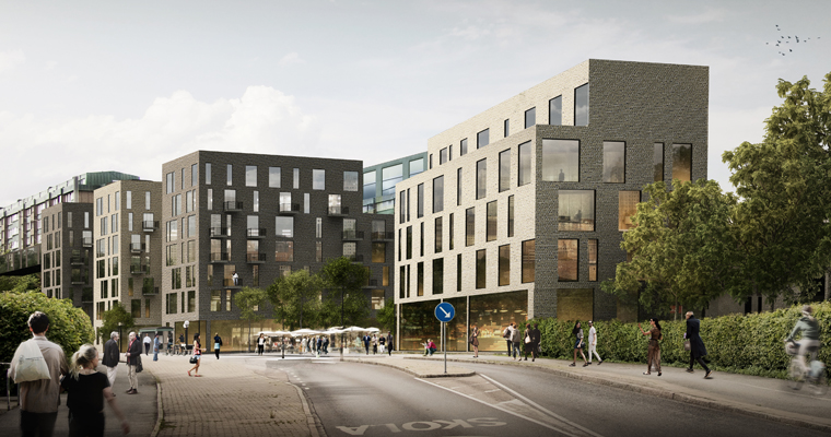 Verksamhetslokaler med entréer mot Danska Vägen skapas och Danska Vägen byggs om med förhöjda övergångsställen, buss-sluss och parkeringar längs med gatan.