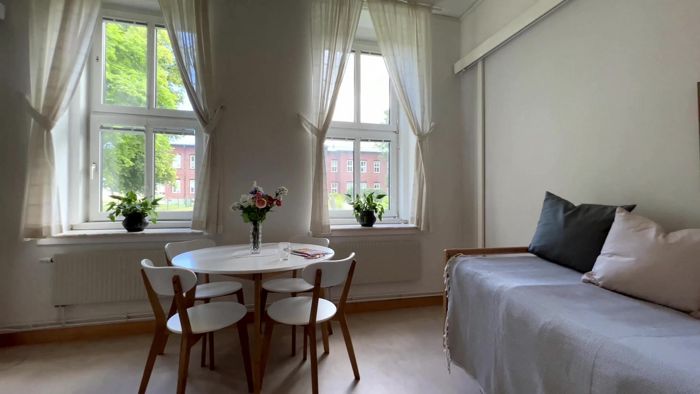 På vård- och omsorgboendet finns det en höj- och sänkbar säng, madrass och trygghetslarm tillgängligt i varje lägenhet. Utöver det tar du med dig dina egna möbler.